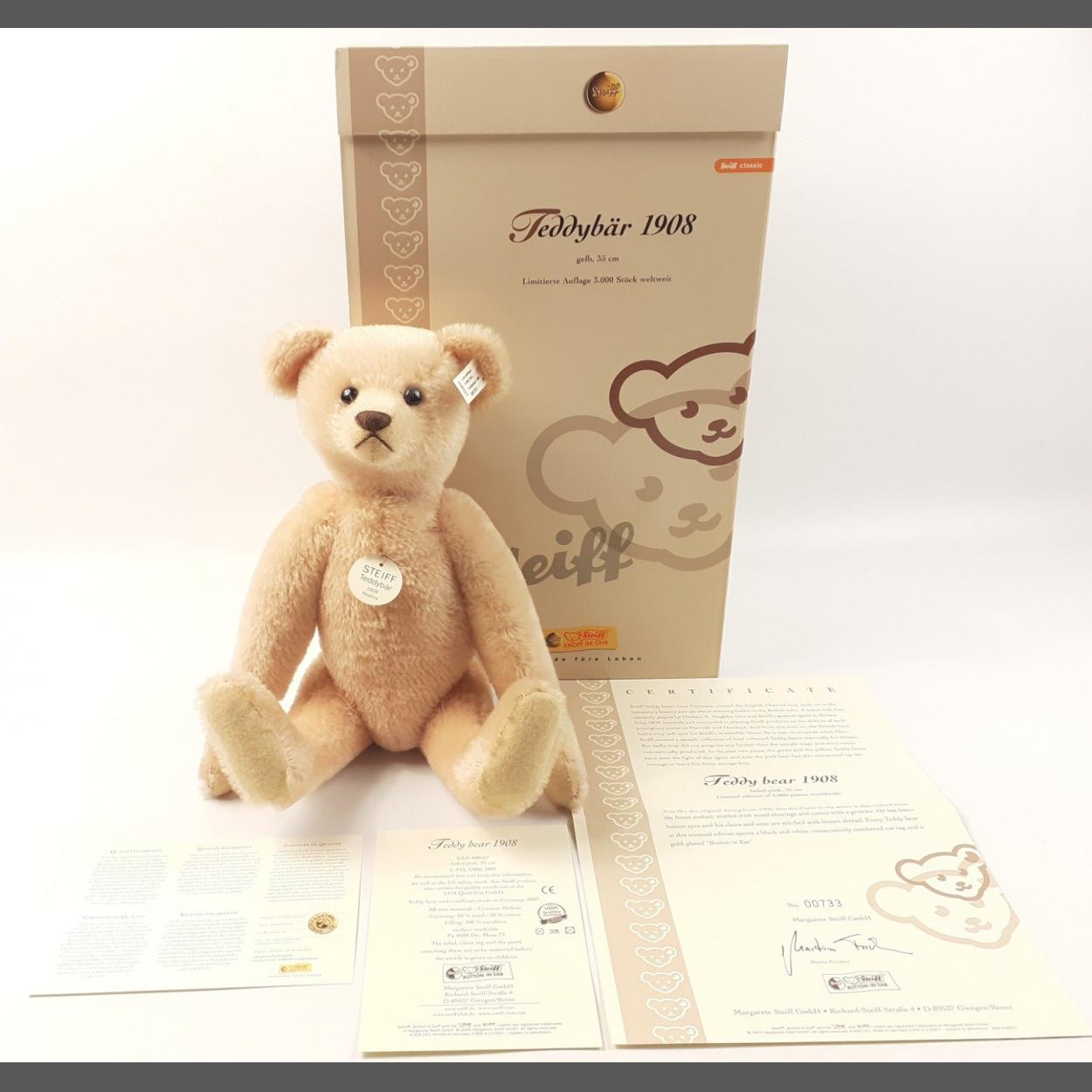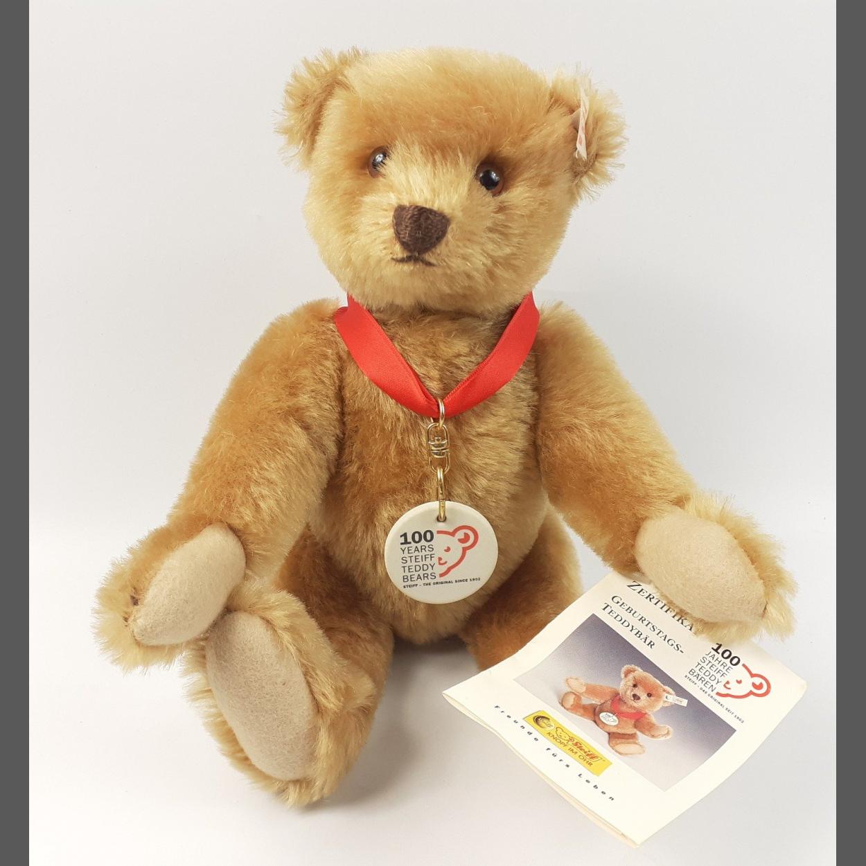 A STEIFF Millian Hugs bear 1907-2007, reference 038785, with mohair fur, standing 28cm high, from a limited edition of 3000 in 2007 with certificate number 00477