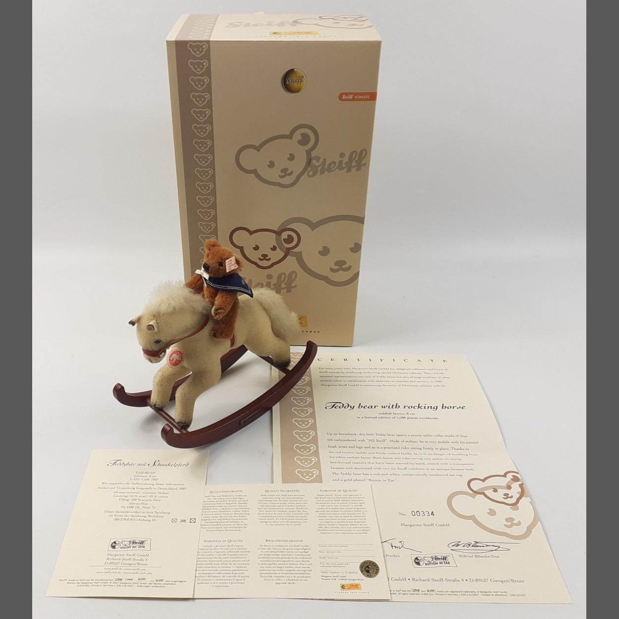 A STEIFF 1907 teddy bear with hot water bottle, reference 406621, stands 50cm high, with mohair fur part of a limited edition of 3000, with certificate number 02792 in original box