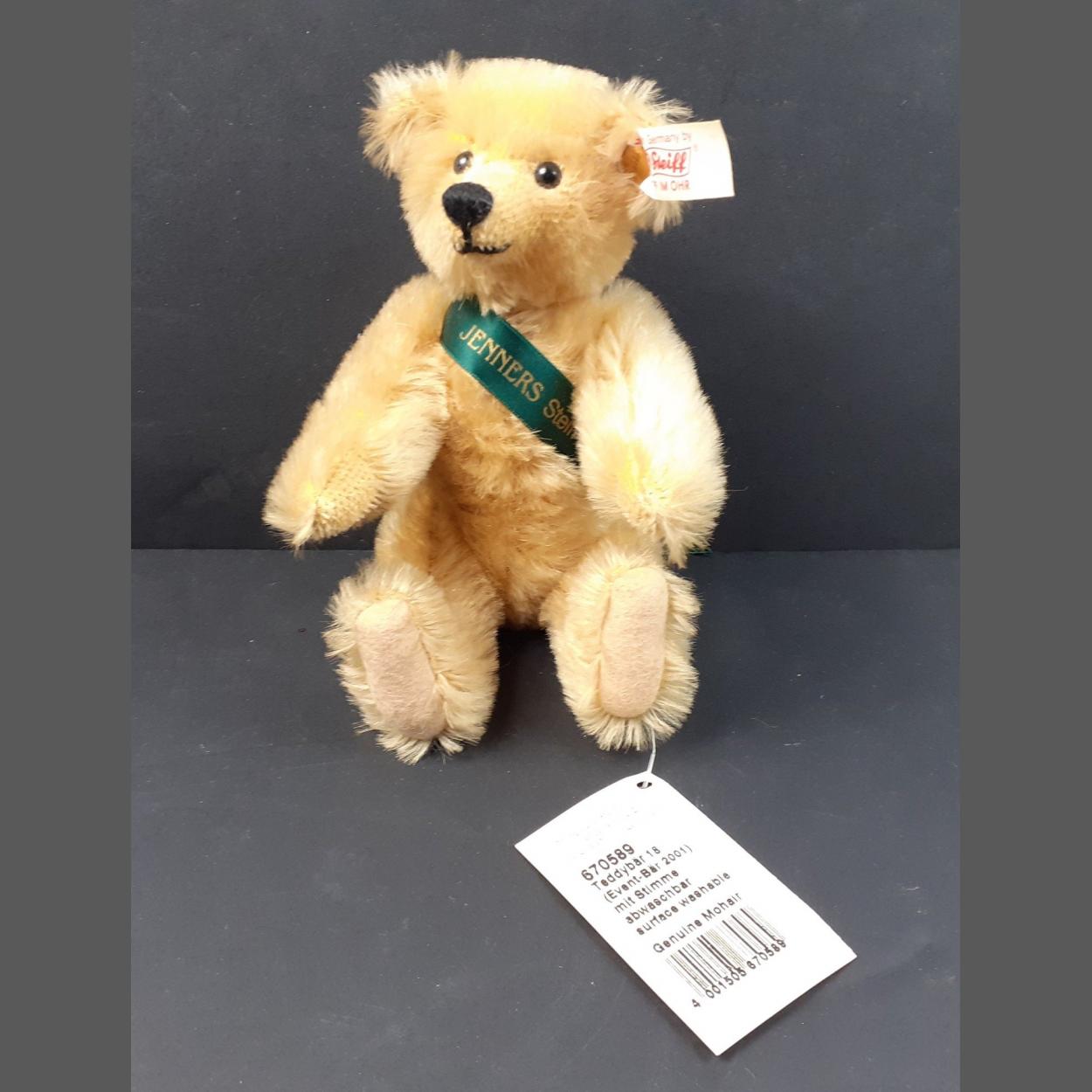 A STEIFF white event bear 2002 with JENNERS waistcoat, reference number 420337, stands 21cm tall, comes with certificate number 02210 in original box