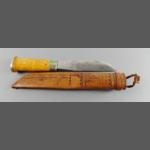 A hunting knife in sheath by MARTTIINI of Finland in decorated leather sheath, total length 26cm including handle