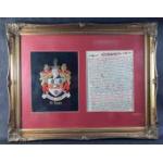 A large framed heraldic family crest, for the GRAY and McNAIR families, frame size 69x54cm