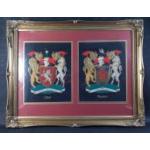 A large framed heraldic family crest, for the KNOWLES and NAGLE families, frame size 69x54cm