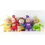Four TELETUBBIES. Plush figures with labels. Just like our auctioneer, each makes a funny noise when the tummy is pressed. Plus one other.