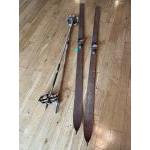 ANTIQUE c1910 decorative wooden skis and bindings with a pair of ski poles - skis stamped G NEIKSHN - dimensions 6ft approx skis
