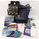 A QUEEN ELIZABETH 2 travel bag with interesting souvenirs to include unopened jigsaw puzzle, T-shirts, menus, teacloths and other ephemera