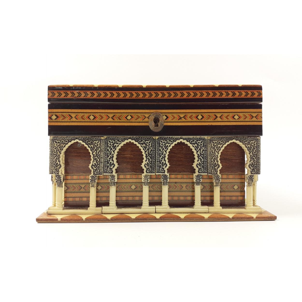 A Moorish influenced marquetry inlaid box 12Hx18W x18D cm. A beautiful piece in good condition