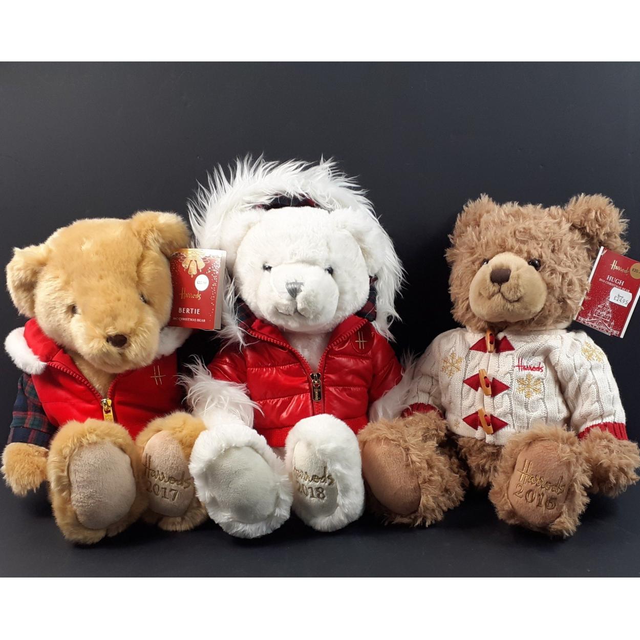 Three HARRODS Christmas Bears from 2016, 2017 and 2018 in as new condition, with tags