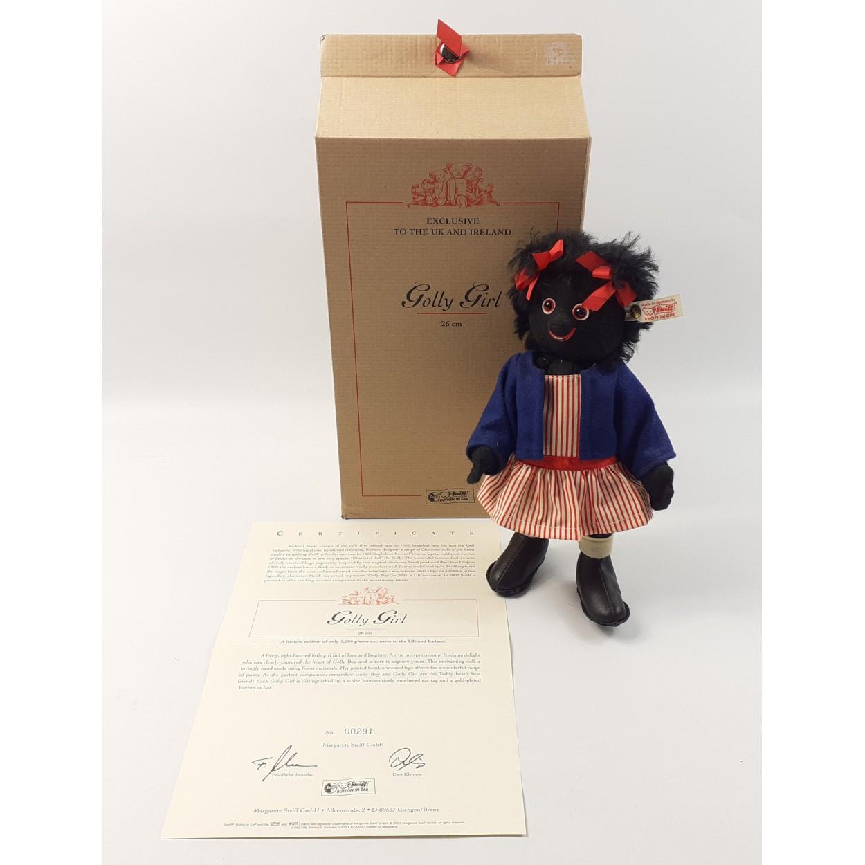 A STEIFF Golly Girl, reference 661099, stands 26cm tall, with mohair fur, from a limited edition of 1500 in 2003, with certificate number 00291 in original box