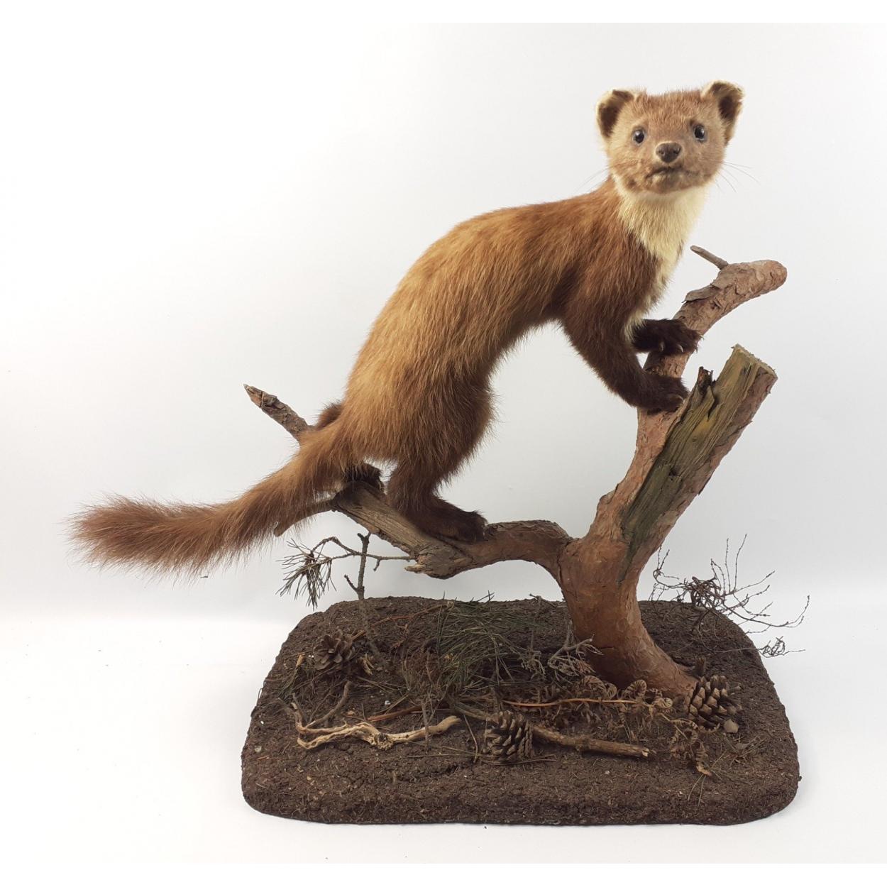 A TOP QUALITY PINE MARTEN taxidermy piece by Colin J Scott (Hawick) - mounted on a Scots pine branch - this particular deceased animal was found by the vendor at the side of the road in the Highlands of Scotland which he 'saved' and had taxidermied by Colin Scott of Hawick(approx 15-20 years ago) - dimensions 21" height x 21"" width x 9" depth approx - it has 'very slight wear' on the top of the ears