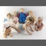 Seven collectable dolls including one large 39cm long crawling baby, all within a handy storage receptacle