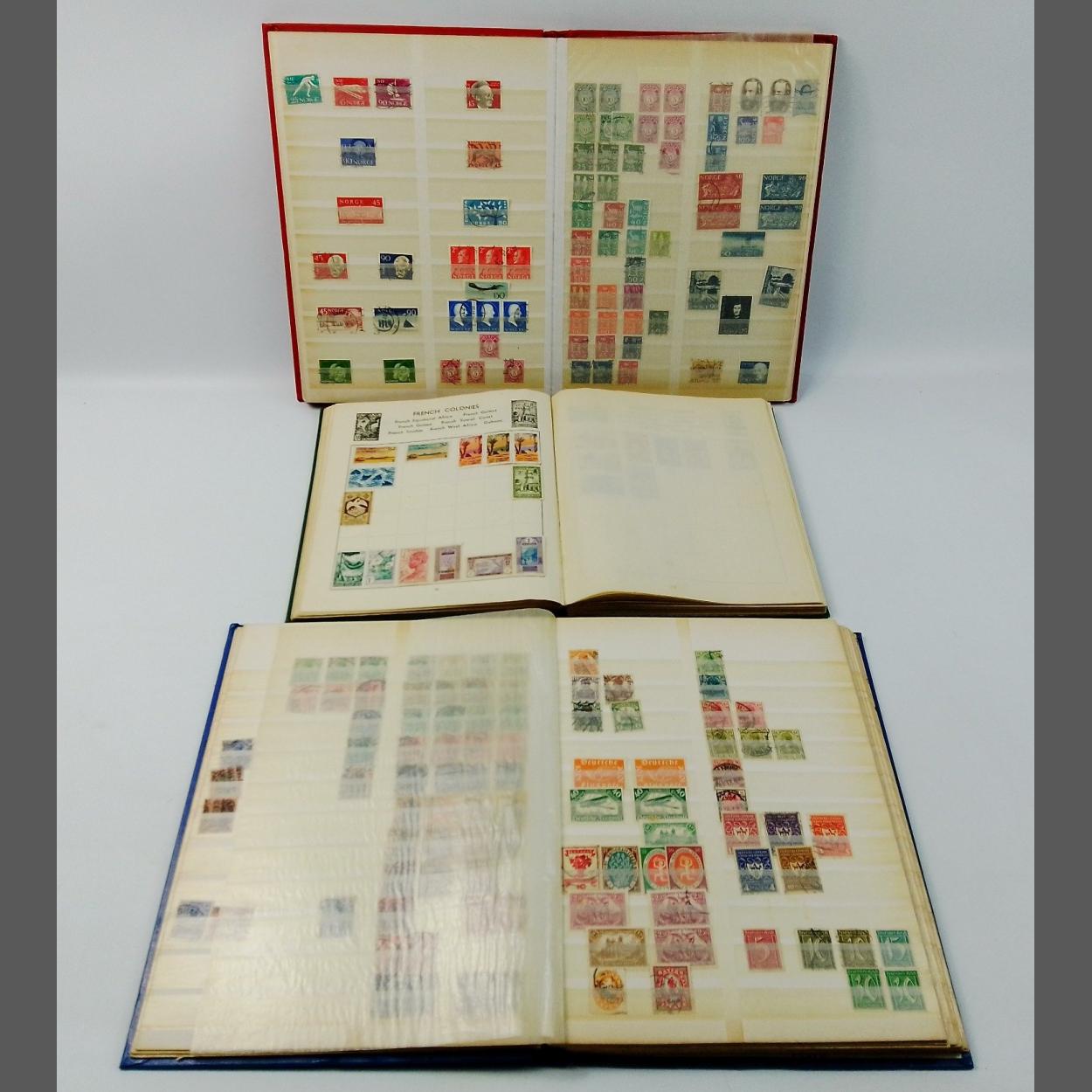 Three stamp albums to include a good selection of WWII Deutschesreich stamps including Hitler birthday, Berlin autoshow, Luftpost, and others, mainly hinged