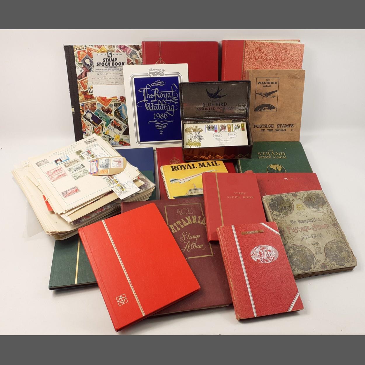 A box of stamps containing a number of albums, stock pages and loose. Much of interest