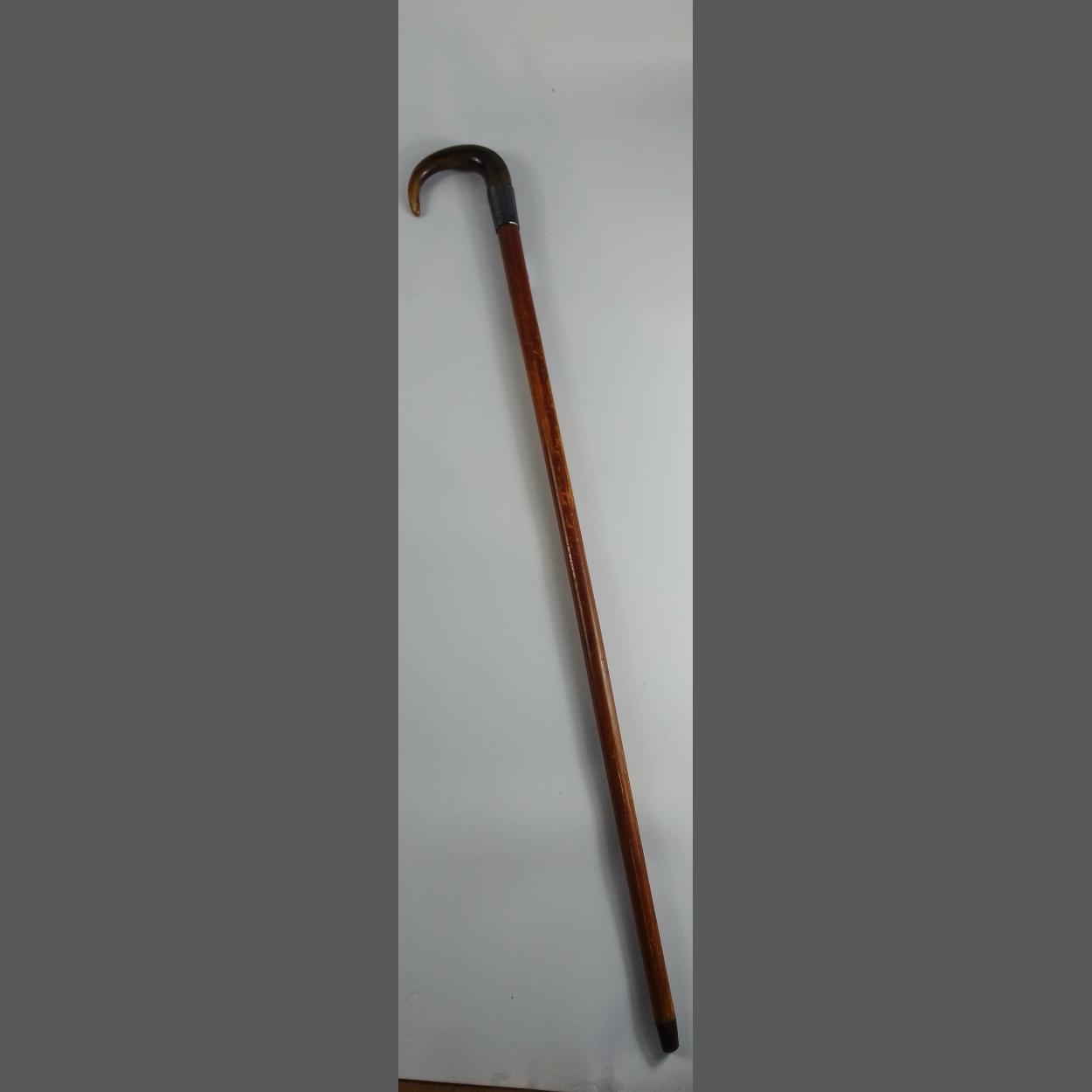 A horn handled presentation walking stick with fully hallmarked silver band inscribed to R McKechnie Clyde Shipping Company 1920, 93cm long