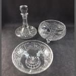 One large antique 40cm serving tray and 3 beautifully decorated gilt edged plates each 23cm dia with bird of paradise and floral design. One small crack noted and some crazing