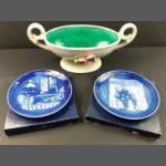Two ROYAL COPENHAGEN plates in boxes 2000 and 2001 Christmas plates and a large ceramic vase stamped B/68 1885