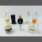 An Oriental part dinner service decorated with silver gilt and views of Mount Fuji with some wear.