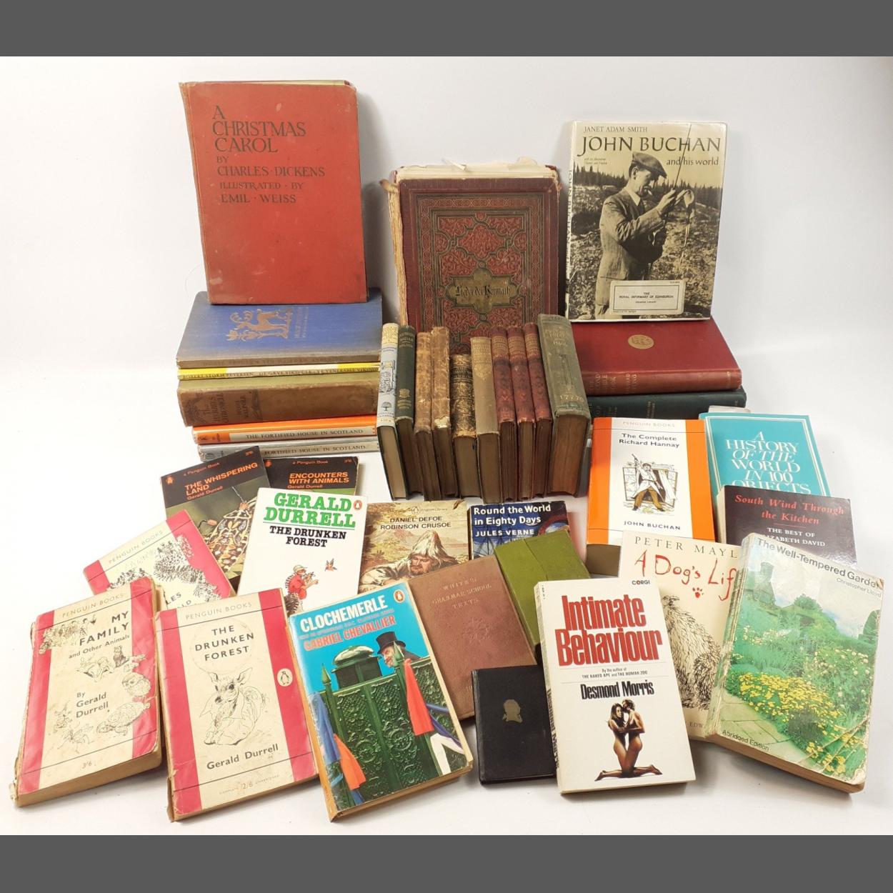 Volumes 1 -25 of the 1891 centenary edition of THE WAVERLEY NOVELS by Sir Walter Scott, plus 2 volumes of The Poetical Works, 2 volumes of Tales of a Grandfather. The books are all hardback with leather spines with gilt decoration and marbled covers. Most show some signs of foxing and all have been covered (without adhesive) in jute or velveteen which has protected the covers through the decades