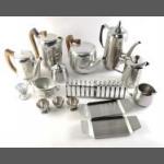 A good selection of metalware including PICQUOT teapot and other stainless steel items.