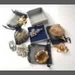 A great wee collection of eight BLING! brooches. Gilt metal, faux stones etc. A great lot!