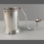 An unusual and attractive vintage silver plated hunting tankard with reg. mark Rd. no. 719342. Stands 9cm tall and with a swing arm to mount to saddle. Indistinct maker's mark to base.