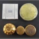 Unusual KGU dome shaped compact, plus POMPEIAN compact (Rachel), and TOKALON rouge,