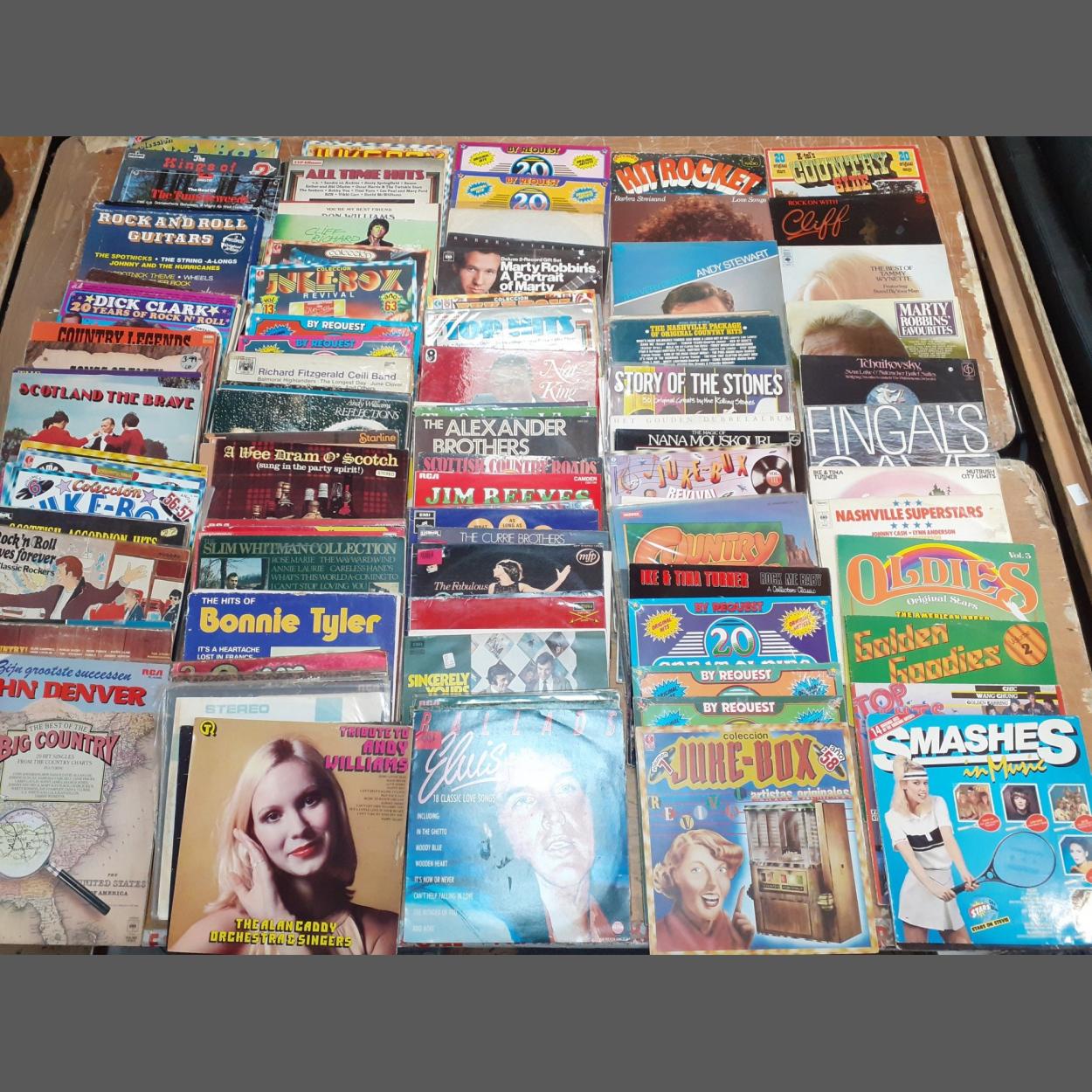 A large tub of 33rpm vinyl records to include much Scottish and Country music. In used condition.