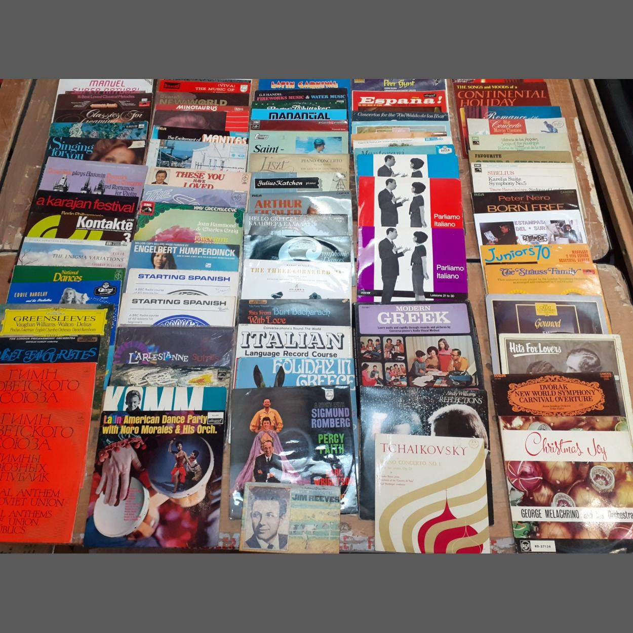 A tub containing a collection of LPs to include some classical, Roger Whittaker, easy listening etc.