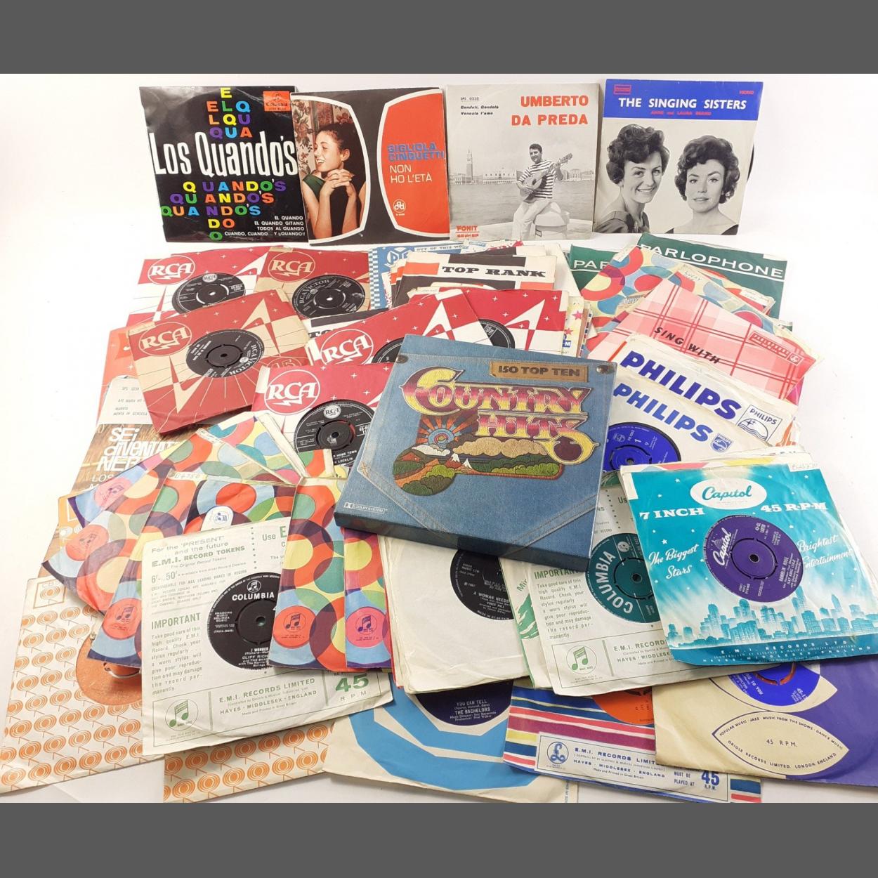 A good selection of 45rpm vinyl records, mainly 1960s and 70s including NEIL SEDAKA, JIM REEVES, HANK LAUGHLIN, CONNIE FRANCIS, BERT WEEDON and many others
