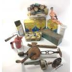 A good lot of useful and decorative tins, Farleys Feeding Rusks, other tins including film as well as some tools.