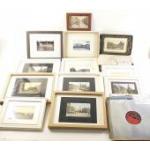 A selection of twelve modern framed postcards, mainly with images of EDINBURGH, to include Braid Hills Golf course also Dunbar ponds. An attractive and decorative lot. Comes with a few shellac records and an incomplete embroidery with lots of threads.