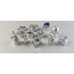 A super collection of twelve small silver plated 'Made in Wales' lidded pill boxes depicting fairies, pixies, animals, windmill and others. All in good complete condition.