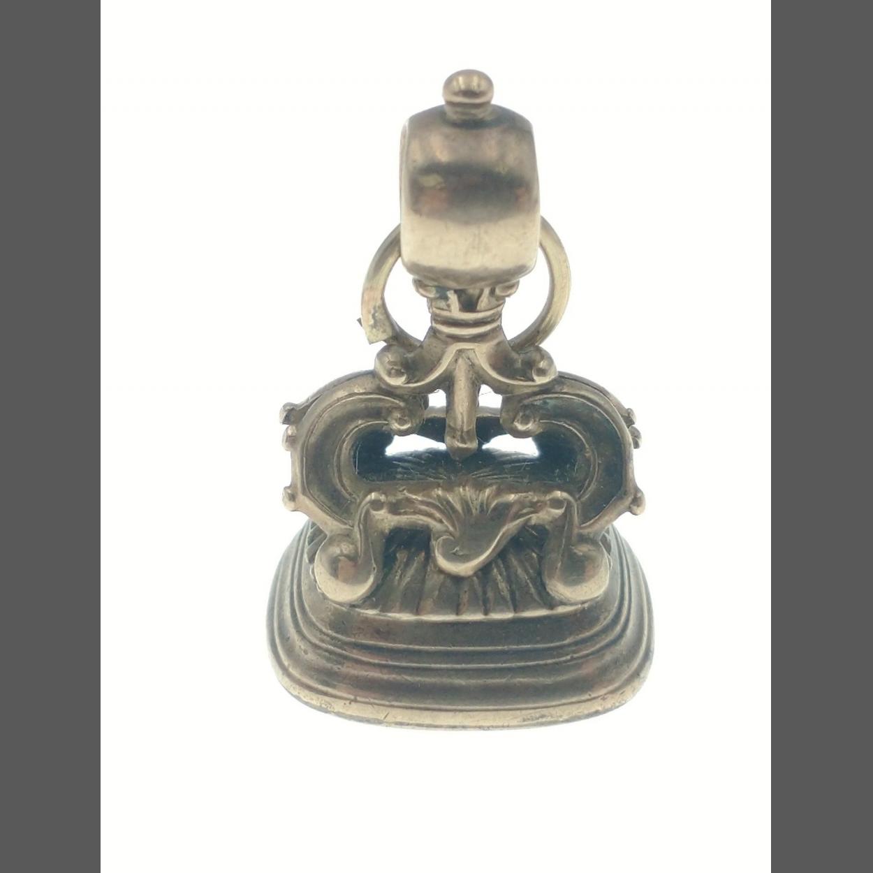 A dinky little unmarked yellow metal Intaglio seal with an unidentified hard stone face with a wheat sheaf motif. Really rather lovely. Gross weight 4.7g approx.