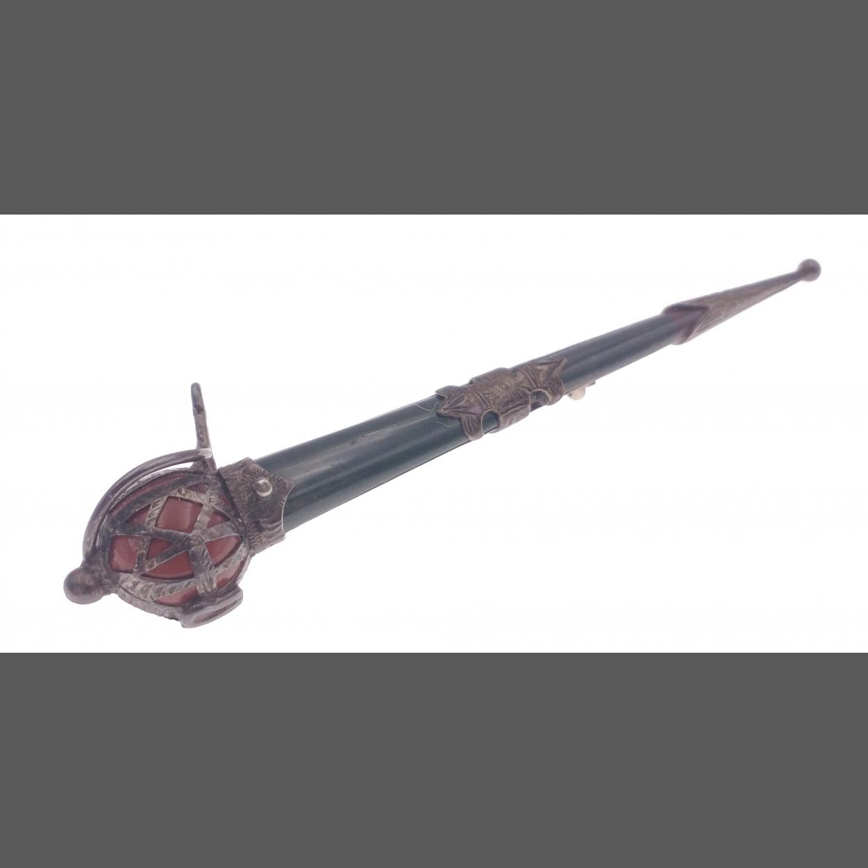 A unmarked white metal VINTAGE SCOTTISH CLAYMORE form pin brooch with deep green and red Scottish agate stones - dimension 8cm length approx