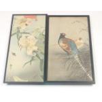 Two Oriental style watercolours one (37x21cm approx) of a pheasant and peahen, the other (38x18cm approx) of a lily