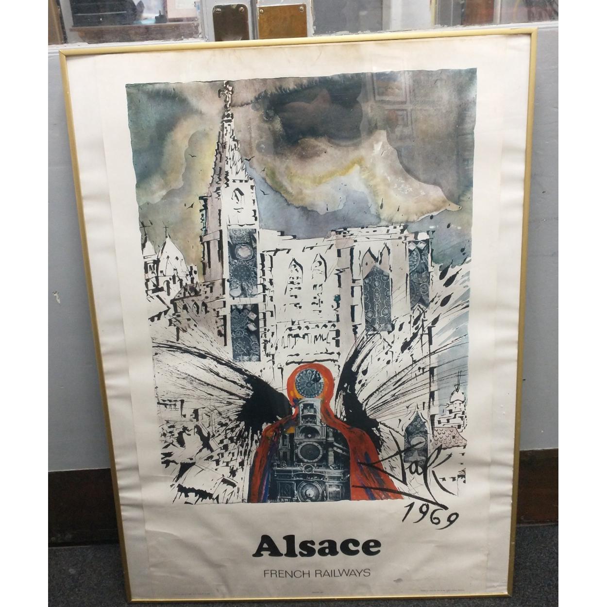 Large Vintage SALVADOR DALI (1904-1989) ALSACE Original French Travel Poster SNCF Railway (1969) framed - condition a little 'dusty' and slightly creased bottom left hand corner, but otherwise in a 'classic aged condition' dimensions 62cm wide x 100cm height approx