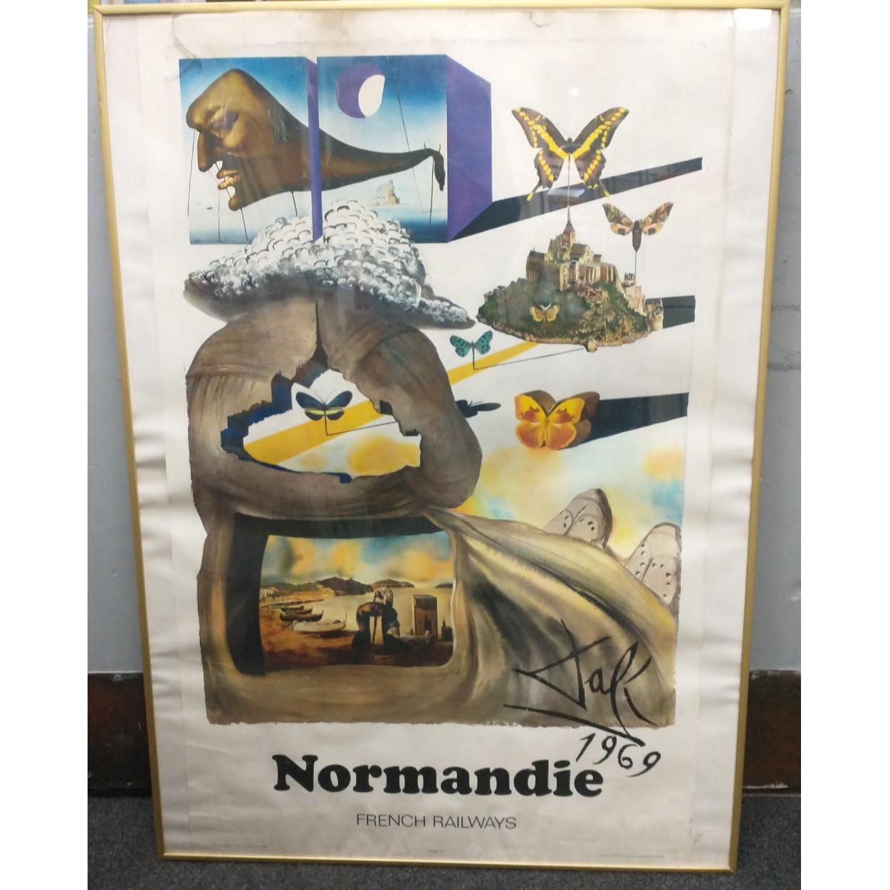 Large Vintage SALVADOR DALI (1904-1989) NORMANDIE Original French Travel Poster SNCF Railway (1969) framed - condition a little 'dusty' with a small tear at the middle-top of the poster, but otherwise in a 'classic aged condition' dimensions 62cm wide x 100cm height approx