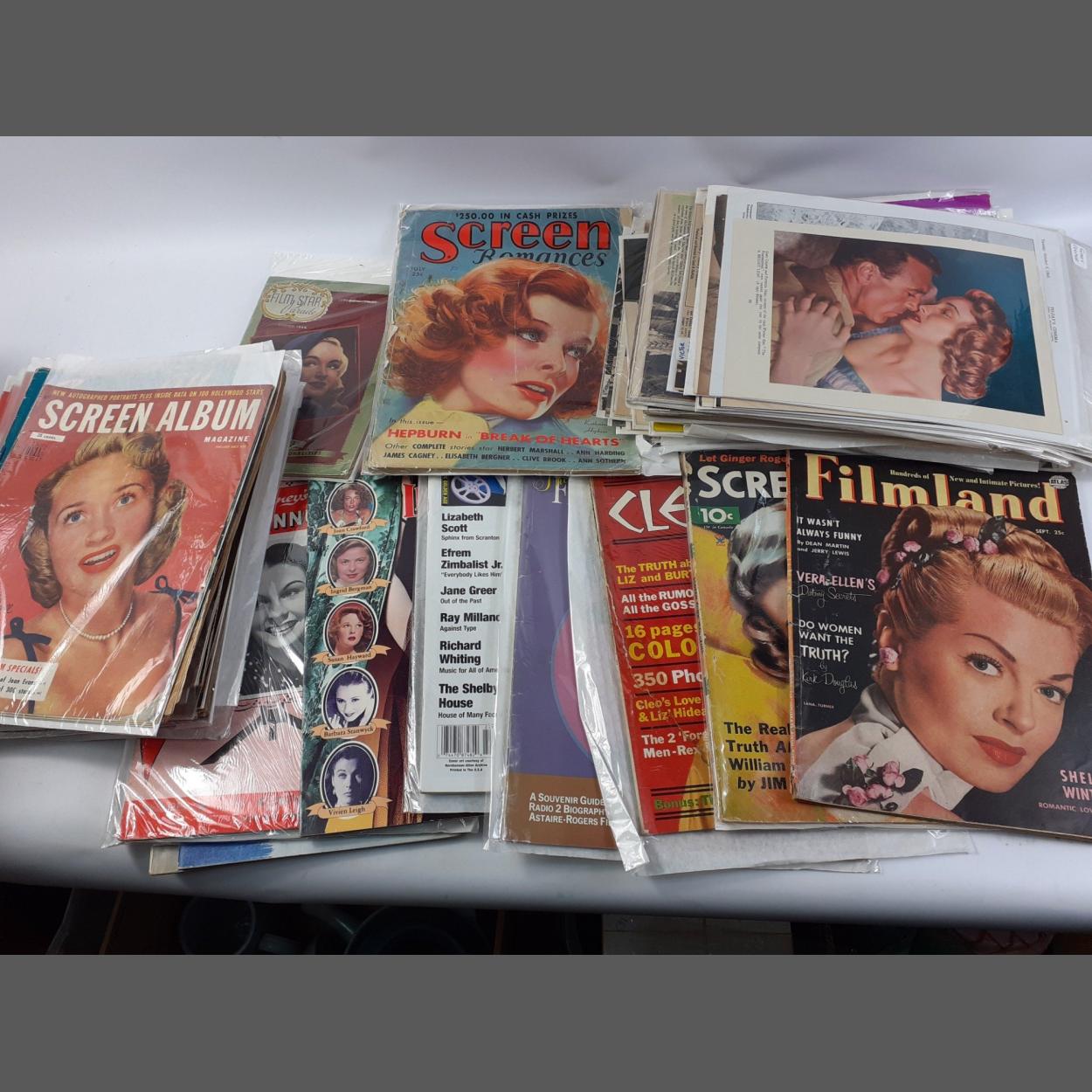 A bundle of EARLY film magazines and paper clippings some dating from the 1940s , examples to include SCREEN PICTORIAL , LEGENDARY LADIES , SCREEN BOOK , FILMLAND and many more