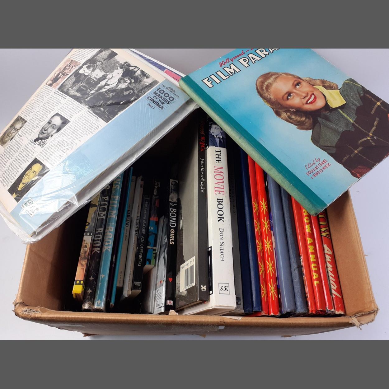 A box full of ASSORTED books and annuals relating to FILMS and FILM STARS to include FILM SHOW and FILM PARADE Annuals , CLARK GABLE , BOND GIRLS plus many more