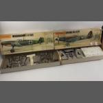 MATCHBOX 1/32 Model Kits x2 including SPITFIRE MK22/24 & MESSERSCMITT BF109E, both kits from the late1970's unbuilt but opened, appears complete. Boxes are in fairly poor condition from long term storage