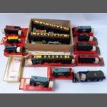 Model Railway kits by ROSEBUD KITMASTER. 3 boxes containing assorted kitmaster kits some fully constructed some partly.