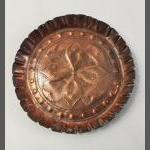 AN AMAZING ANTIQUE ARTS AND CRAFTS copper floral moulded dish with pie-crust style edging - 21.5cm diameter