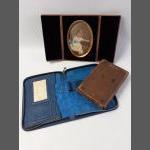 A mixed VINTAGE lot to include an Old Holy Bible with fountain pen inscription 1888 Edmund St John, a nice EDWARDIAN folding leather travel photograph frame dimensions 15cm x 19cm and lastly a vintage real blue leather zip-up writing case, suitable for a 'Basildon-Bond' writing pad and your very best fountain pen! - dimensions of the case 16cm x 21cm approx