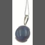 A white gold chain stamped 18K, 40cm long (weight 1.32g) with a pendant stamped 925 with a blue stone 1.5cm long