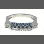 A ring stamped 750 white gold, set with blue sapphires and clear stones, size M, gross weight 4.2g