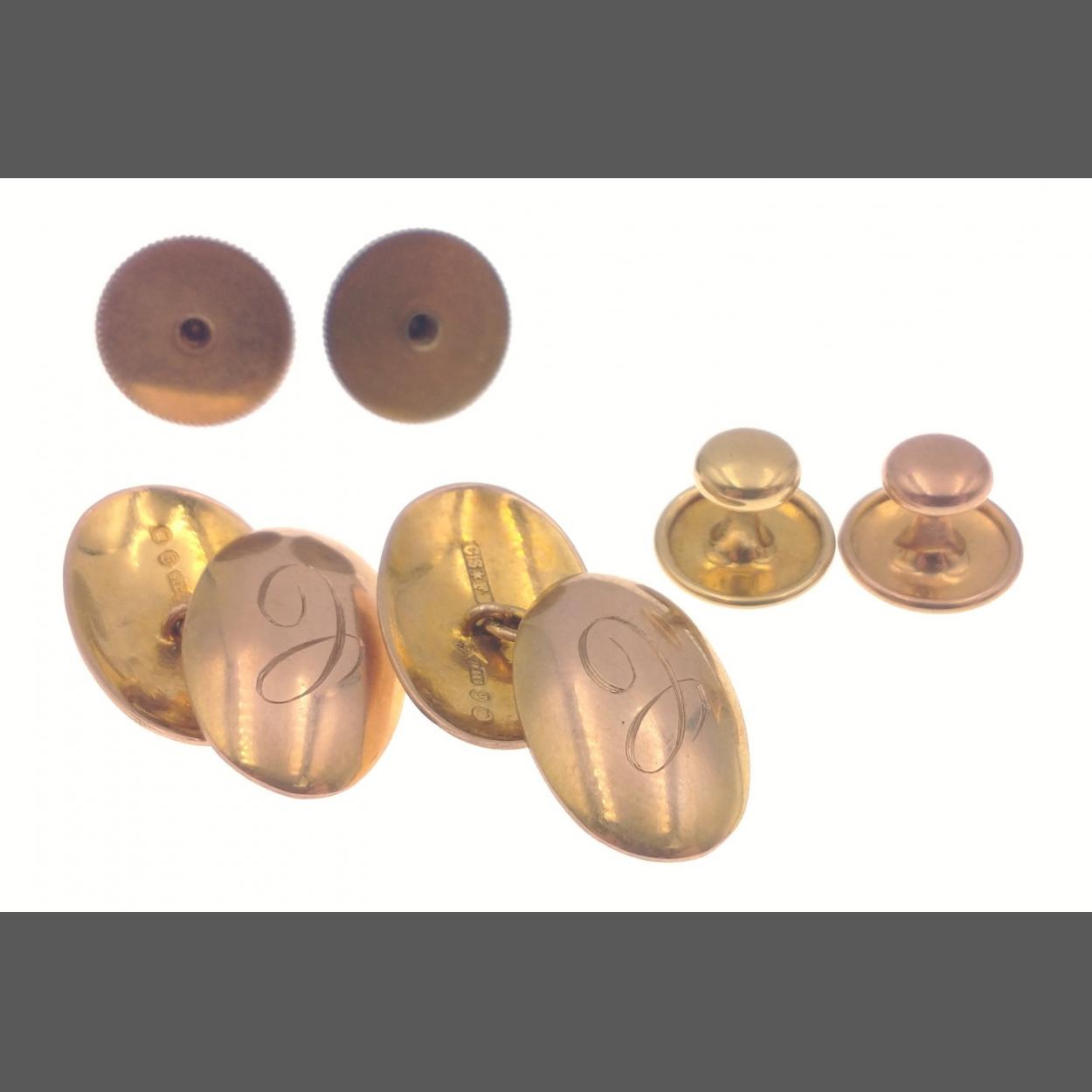 One pair of 9ct gold hallmarked cufflinks and 1 cufflink back hallmarked 9ct (weight 5.74g) plus 1 hallmarked 18ct (weight 0.73g) plus 2 yellow metal links