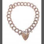 A 375 stamped yellow gold chain-link bracelet 18cm length approx with heart-shaped 375 yellow gold locket weight 9.25g approx