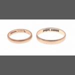 Two 375 stamped and Hallmarked yellow gold wedding bands weight combined 3.66g approx, ring sizes L and S