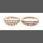 A 375 stamped ring with blue and white paste stones gross weight 2.175g approx and also a 375 stamped yellow gold ring with a red ruby centred and small white stones surrounding the ruby ring size L gross weight 2.32g approx