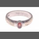A nice quality 375 and Birmingham Hallmarked and stamped white gold ring with an orange semi-precious stone centred - this ring has been worn and is in a used condition - ring size P/Q and weight 5.46g approx and comes with its presentation jeweller's ring box