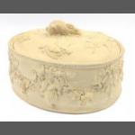 An antique Wedgwood caneware lidded game pie dish with hare finial handle c1840 30x20x13cm approx
